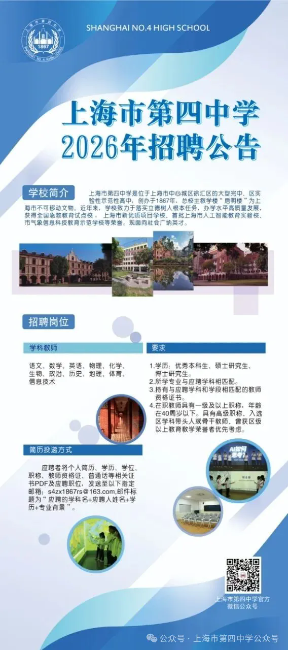 上海市第四中学2026年招聘公告