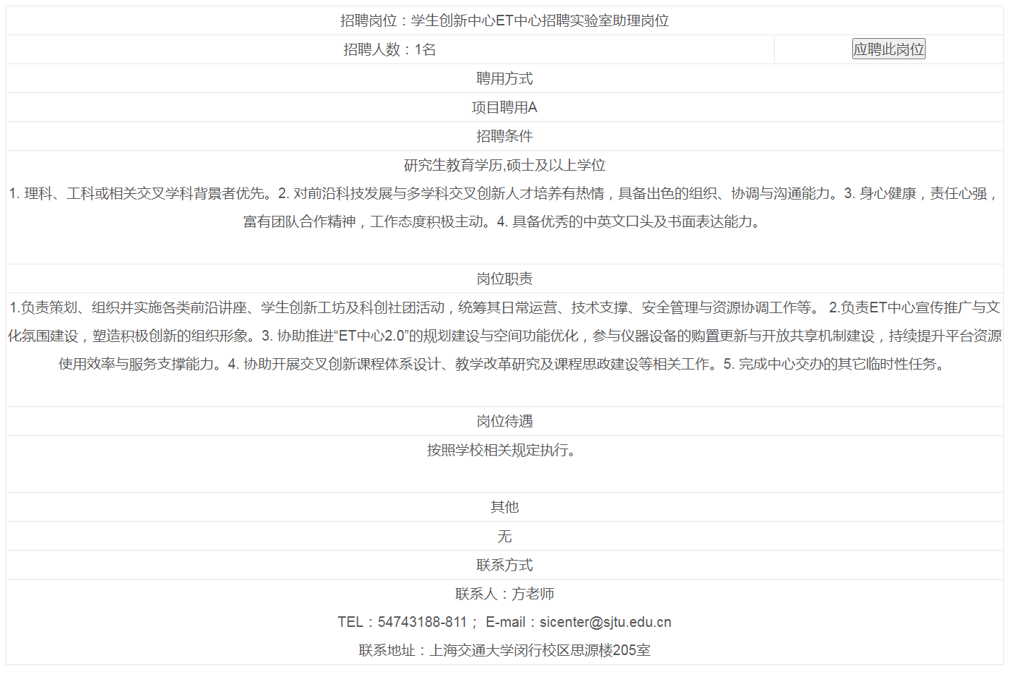 上海交通大学学生创新中心ET中心招聘实验室助理岗位正文