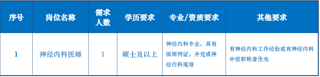 2026年上海市精神卫生中心神经内科医师招聘信息摘要